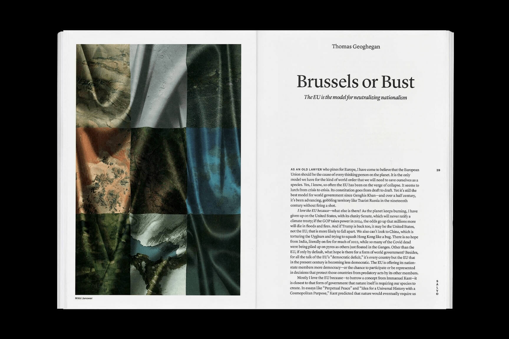 In Issue 67, The National Interest, birds-eye landscapes come together to form a tapestry. The work accompanies an argument for global confederacy, using the EU as a model for a federation of republics.